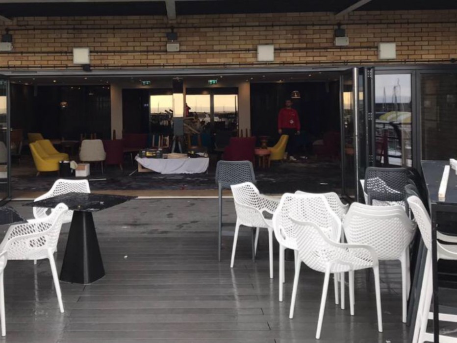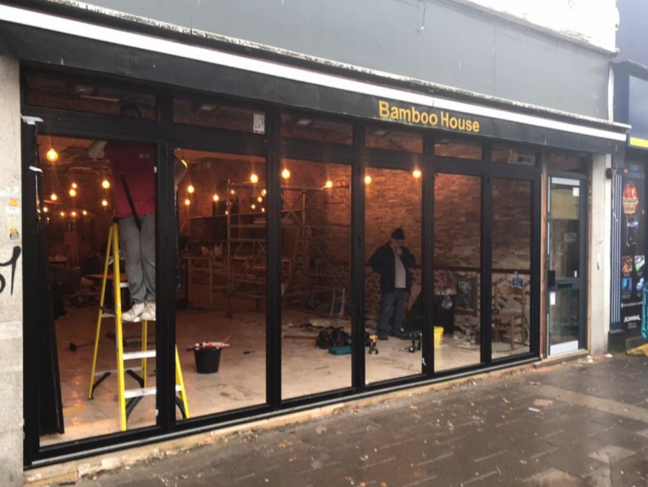 POWDER COATED BYFOLD DOORS AND INCORPORATED INTO THE SHOPFRONT SUPPLIED AND FITTED IN BRIGHTON BY OUR EXPERT FITTERS ALL COMES WITH 10 YEAR PARTS AND LABOUR GUARANTEE AND THE 10 YEAR FENSA GUARANTEE,ALL ENQUIRES PLEASE CONTACT SCOTT ON 01273380022.