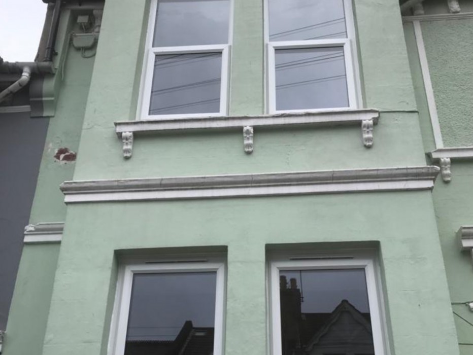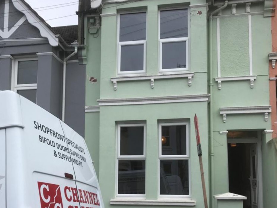 BEFORE AND AFTER PICTURES OF A FRONT FACADE OF A PROPERTY IN BRIGHTON BY CHANNEL GLAZINGS EXPERT FITTERS,TRANSFORMATION OF THIS PROPERTY IS AWESOME,CONTACT US IF WE CAN HELP YOU HELP TO TRANSFORM YOUR PROPERTY JUST CALL 01273380022.