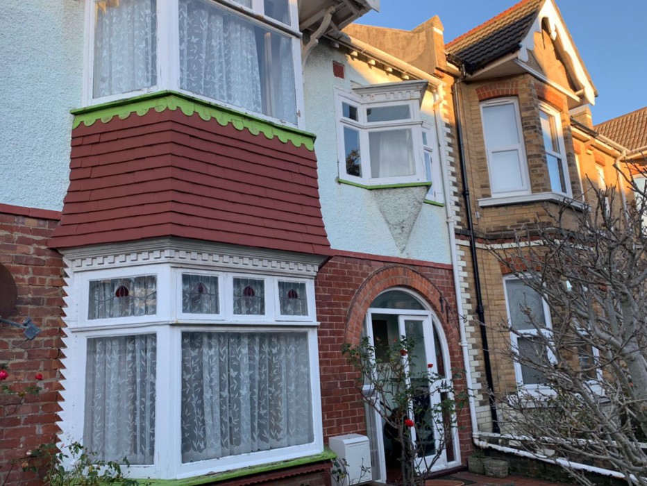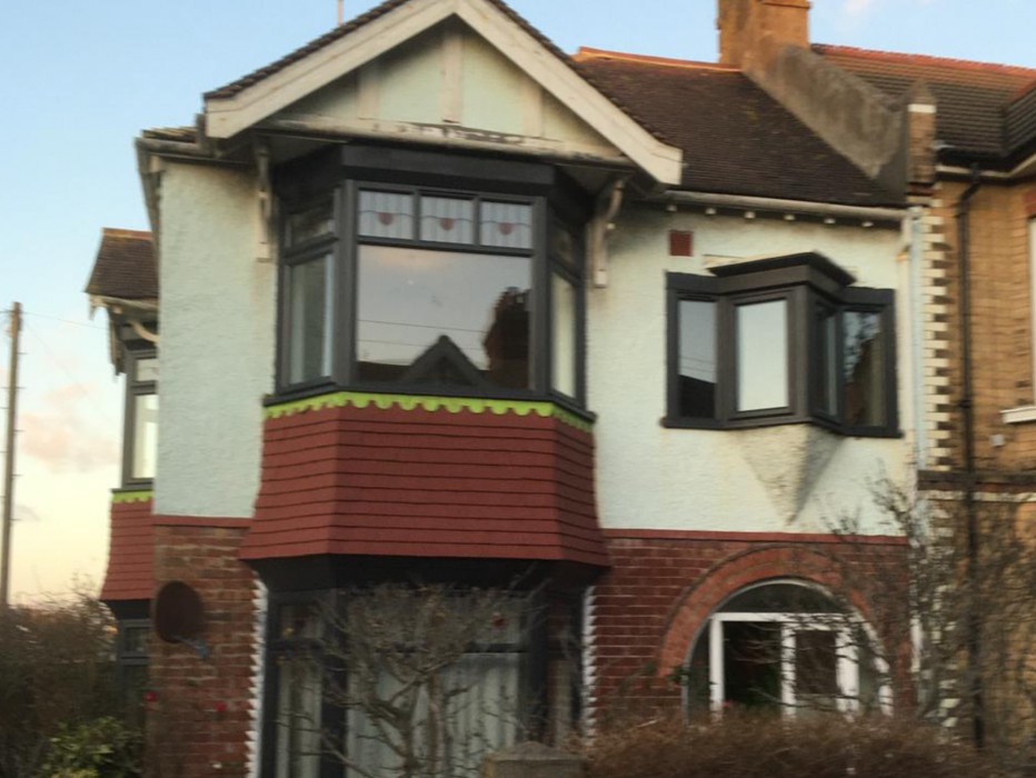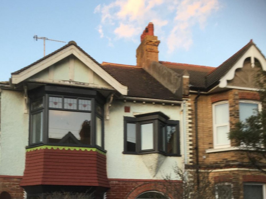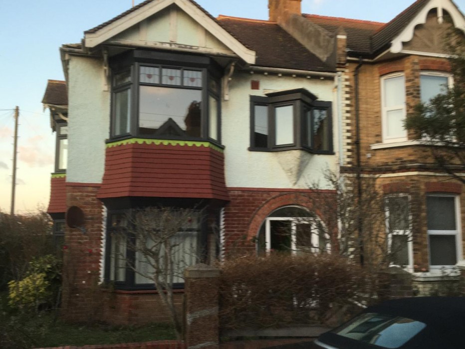 BEFORE AND AFTER PICTURES OF GREY POWDER COATED ALUMINIUM WINDOWS AND DOORS FITTED BY CHANNEL GLAZING FITTERS IN BRIGHTON ALL ENQUIRES TO 01273380022