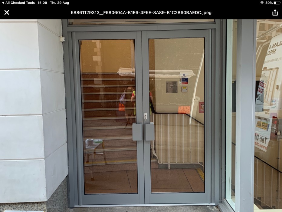 NEW SET OF ALUMINIUM DOUBLE DOORS FITTED FOR TESCO FITTED BY CHANNEL GLAZINGS EXPERTS ALL ENQUIRIES PLEASE CONTACT US ON 01273 380022