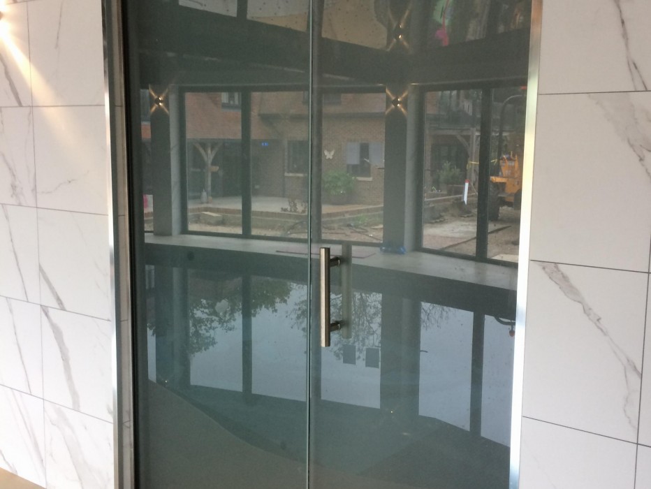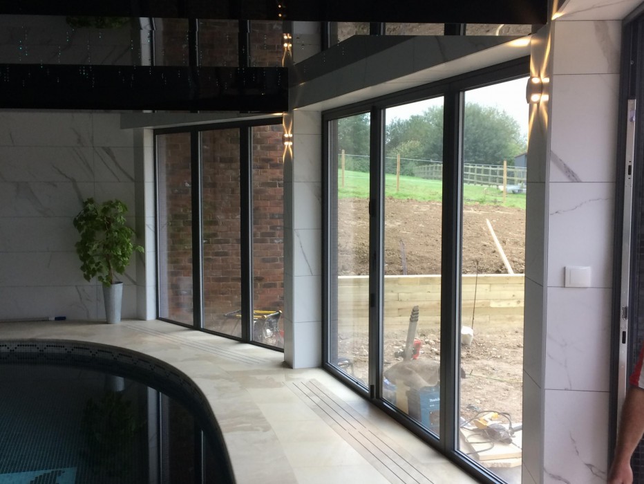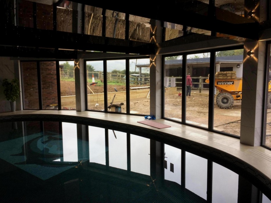An outside and inside pool area glazed by Channel Glazing expert fitters in