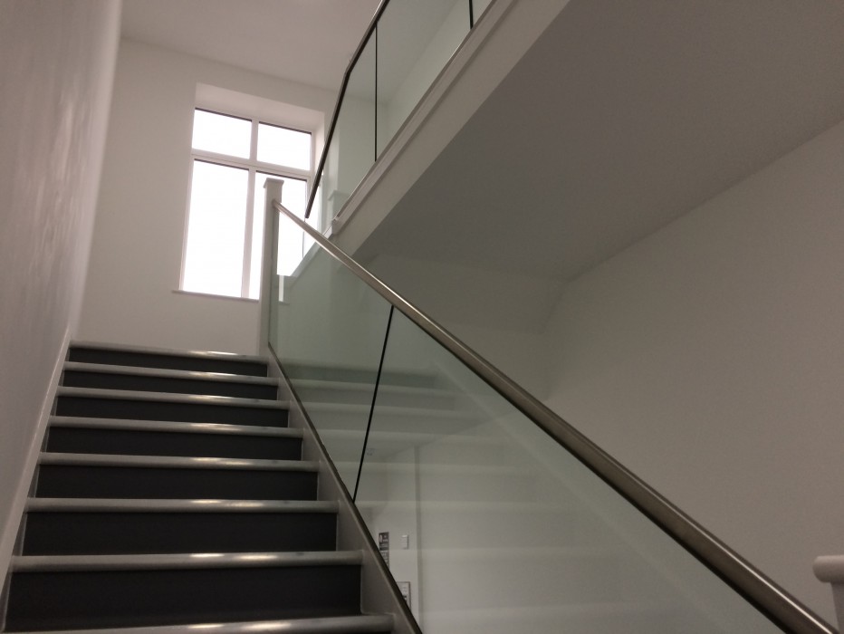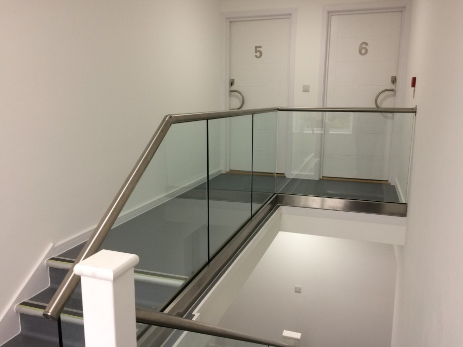 Beautifully installed toughened glass ballastrades with Crome handrails and fittings,Installed by Channel glazings expert fitters.