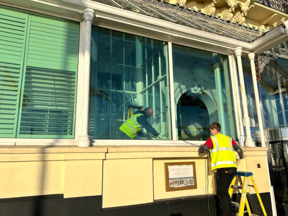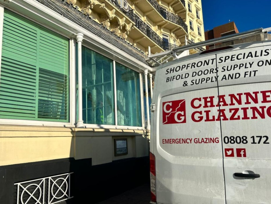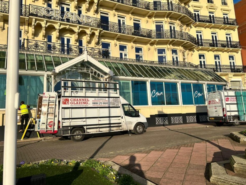 CHANNEL GLAZINGS FITTERS REPLACING GLASS FRONTS AT THE GRAND HOTEL ON BRIGHTON SEA FRONT ONE OF THE MANY PRESTIGE CUSTOMERS THAT WE ARE PLEASED TO BE ASSOCIATED WITH,WE ARE ALWAYS LOOKING TO ADD TO OUR PORTFOLIO,IF YOU NEED ANY TYPE OF GLAZING PLEASE CONTACT SCOTT ON 01273 380022