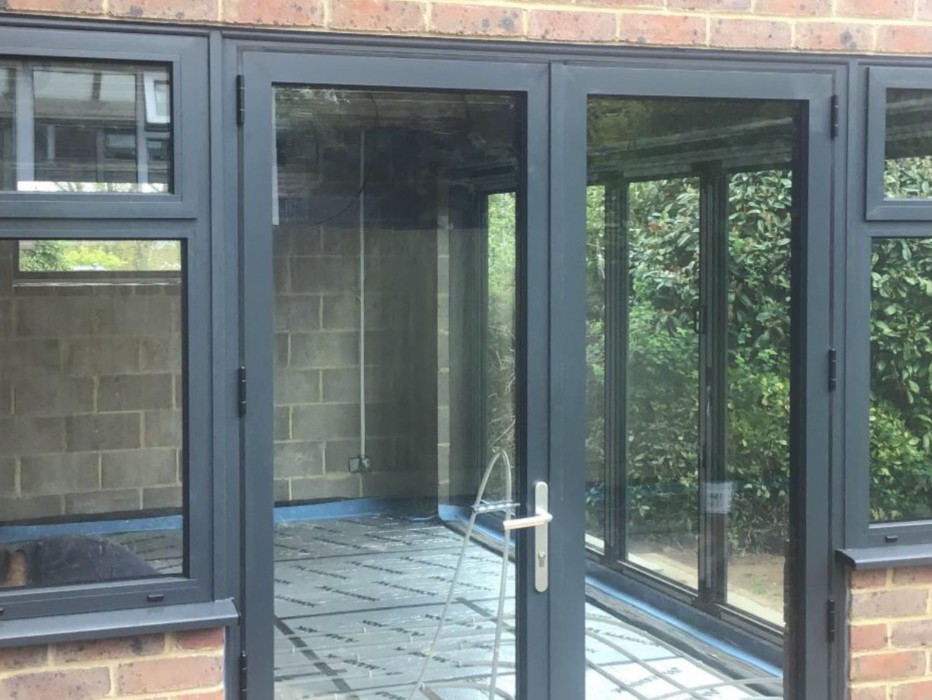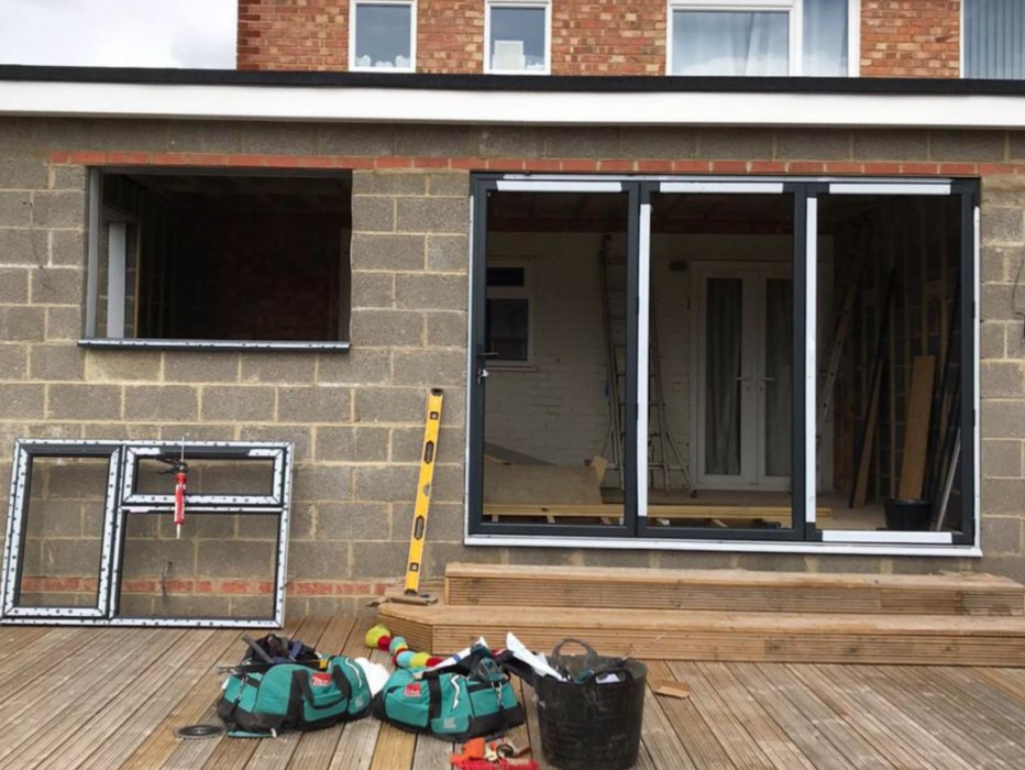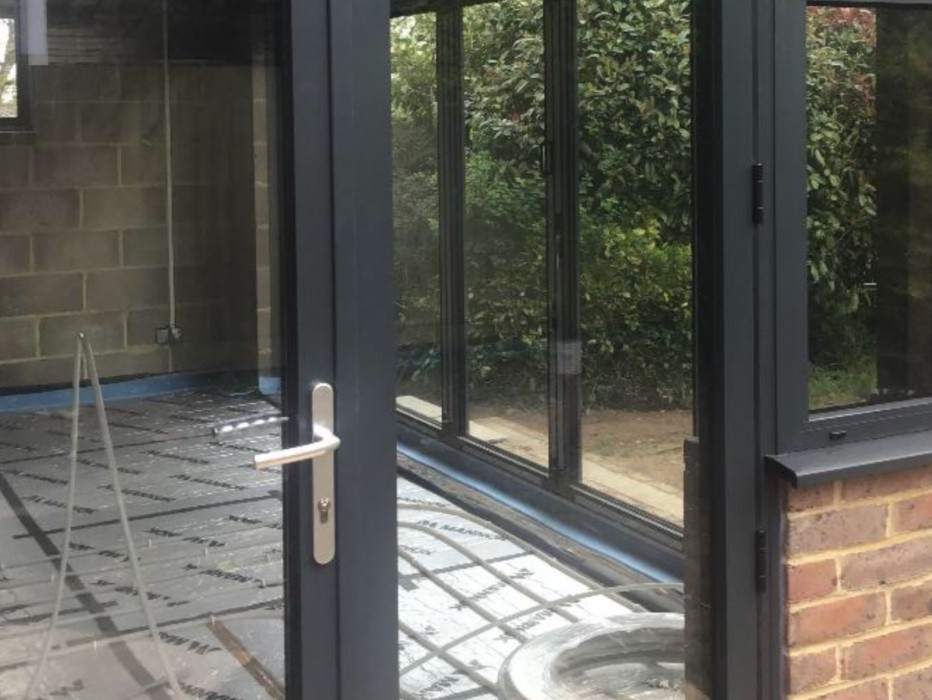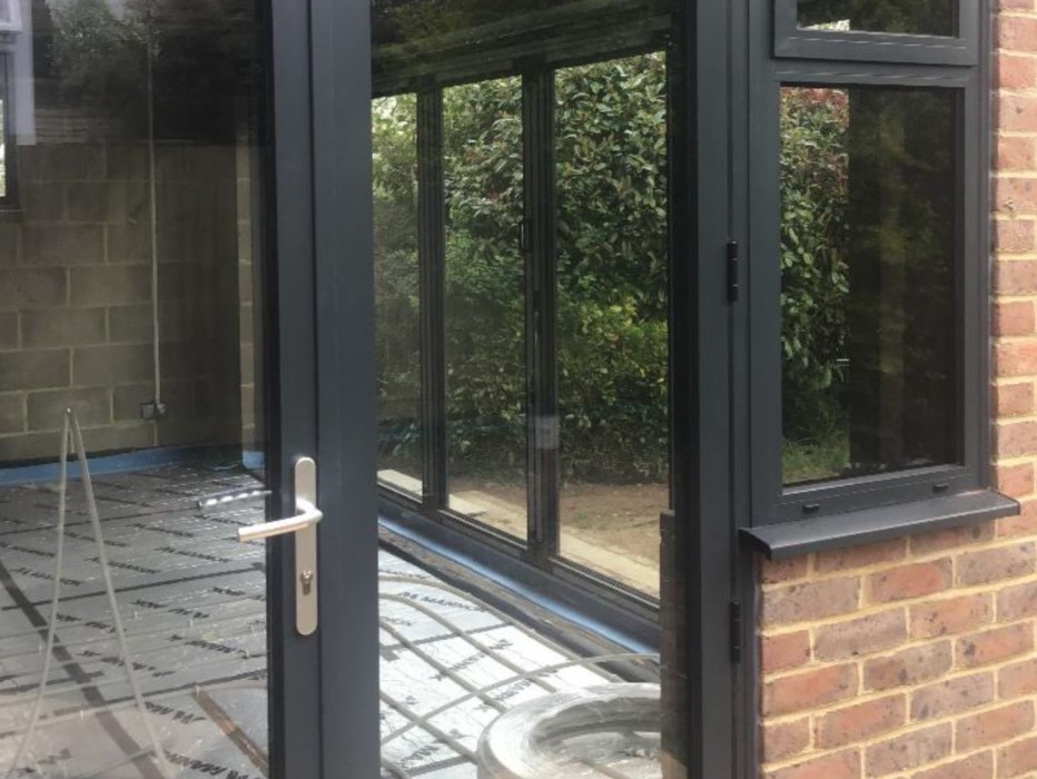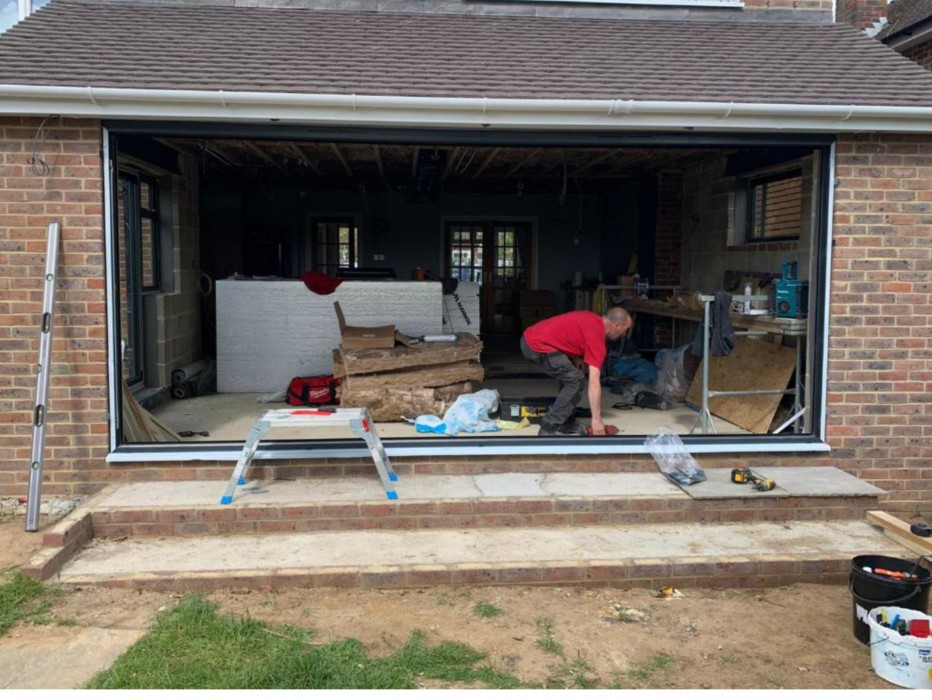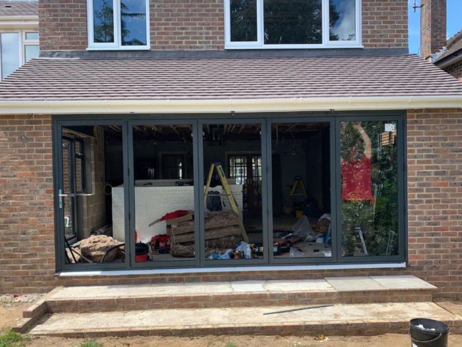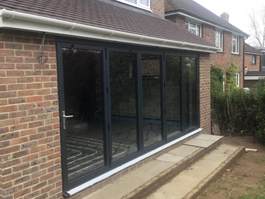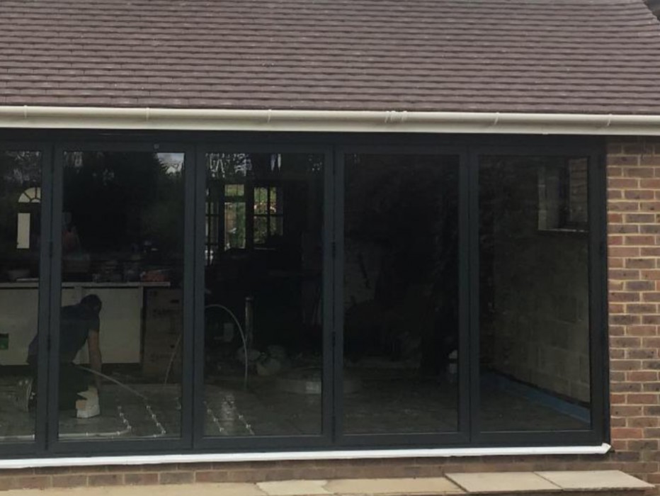 POWDER COATED BYFOLD DOORS FITTED TO A LARGE DETACHED PROPERTY IN BRIGHTON BY CHANNEL GLAZINGS EXPERT FITTERS ALL ENQUIRES PLEASE CONTACT GARY ON 01273380022